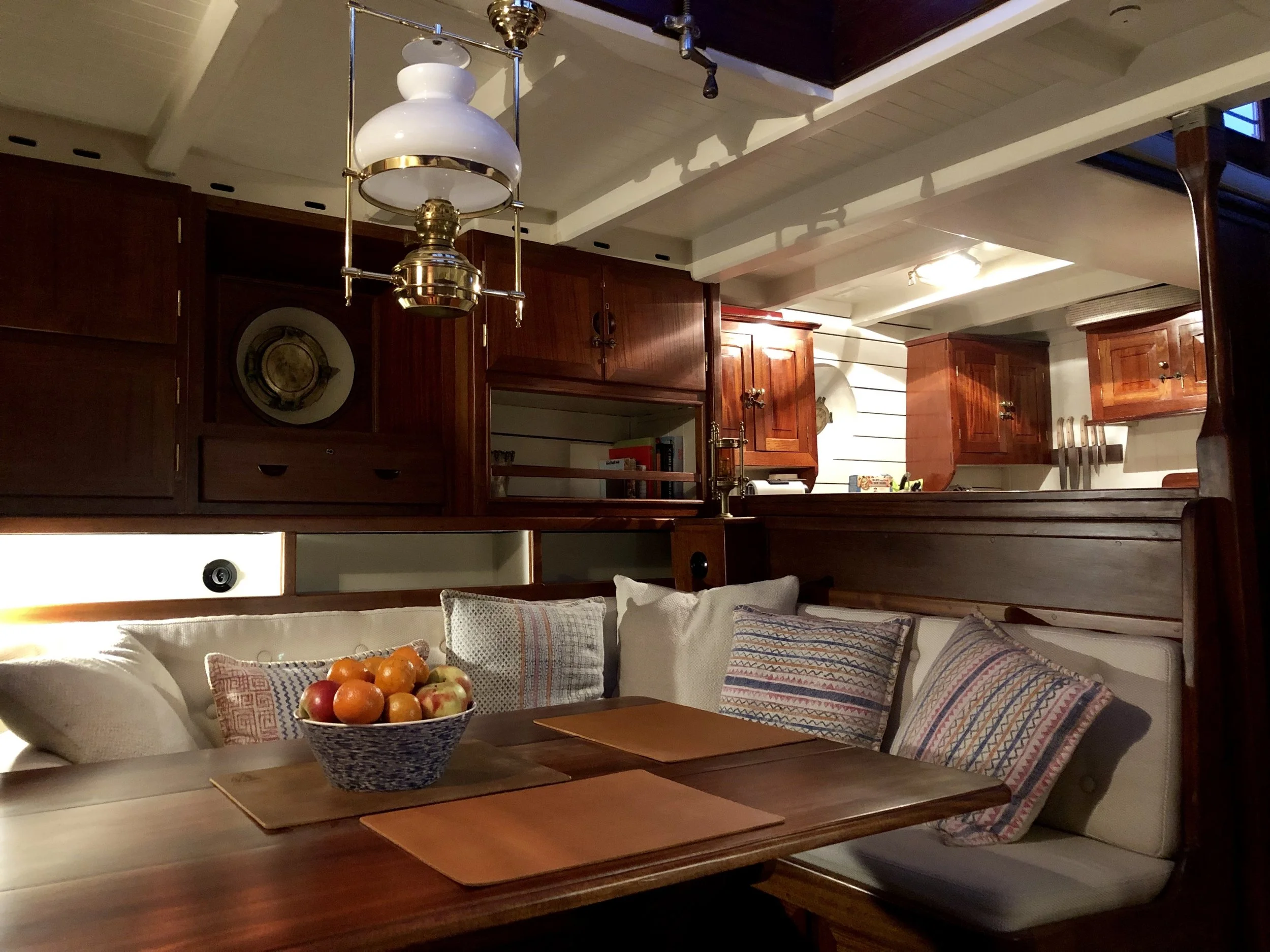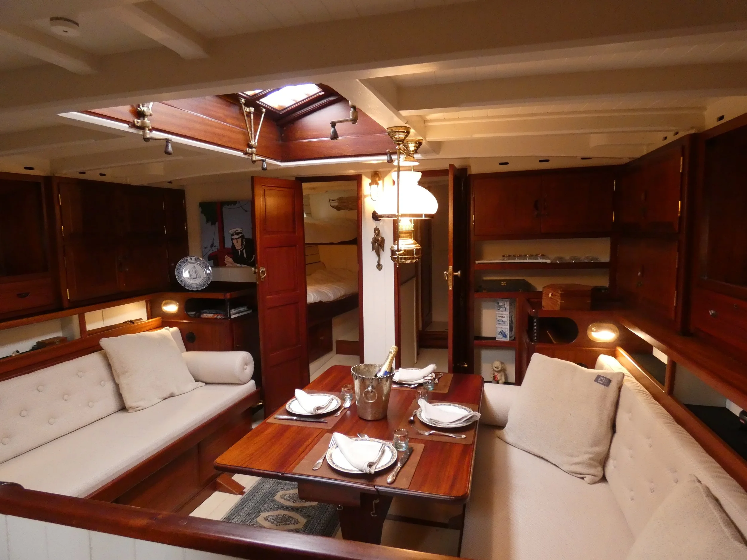 This distinguished classic yacht underwent an extensive restoration between 2016 and 2019, ensuring she combines her original charm with modern reliability and comfort. The work included a completely new teak deck with epoxy under deck, a full exterior and interior refit with updated electrical systems, new upholstery throughout the salon and cabins, new sails, and a brand-new refrigerator. Additionally, in 2023, the yacht received a comprehensive paint job both inside and out, and was given two new layers of antifouling paint, preserving her timeless elegance while enhancing durability.