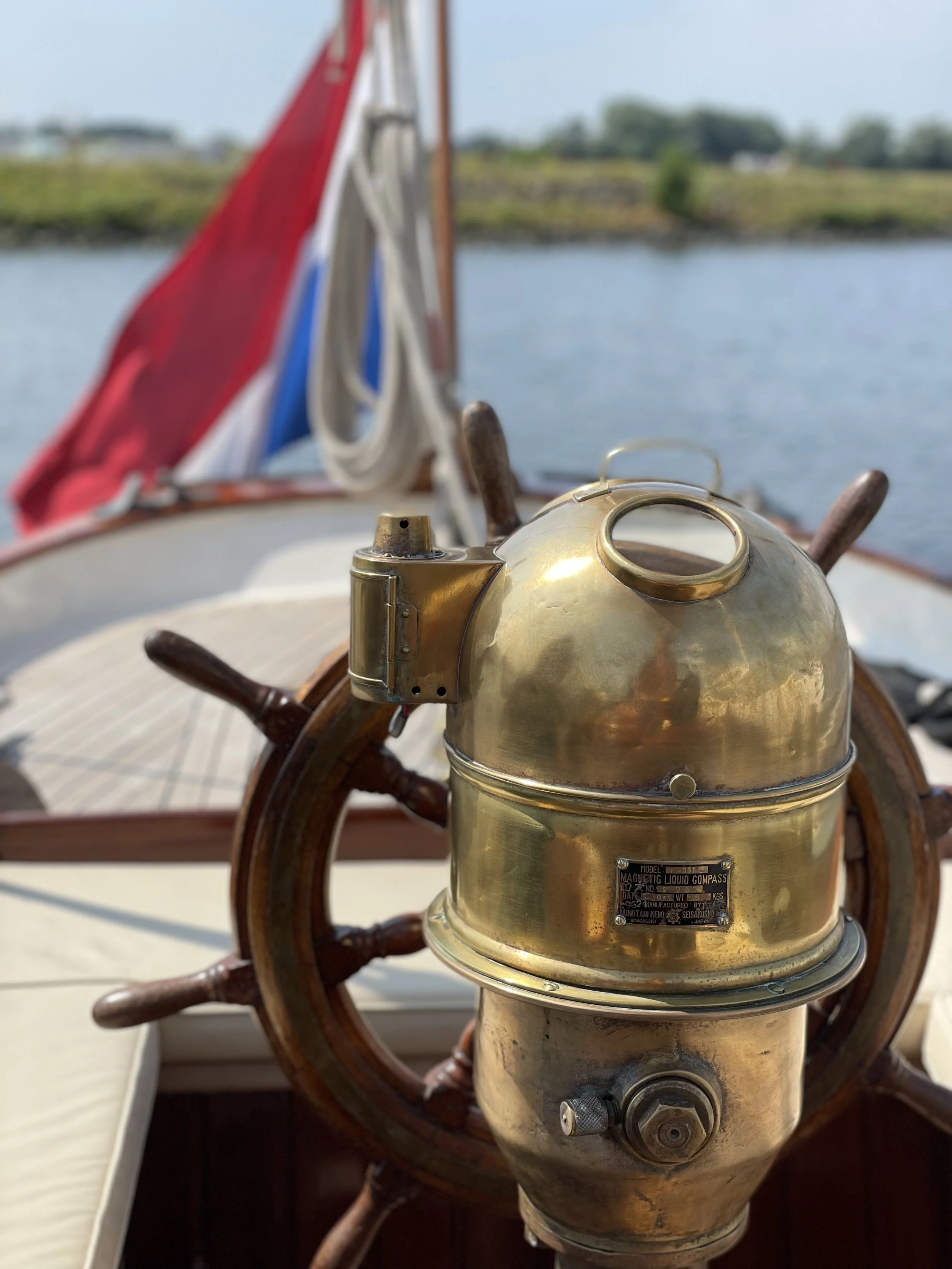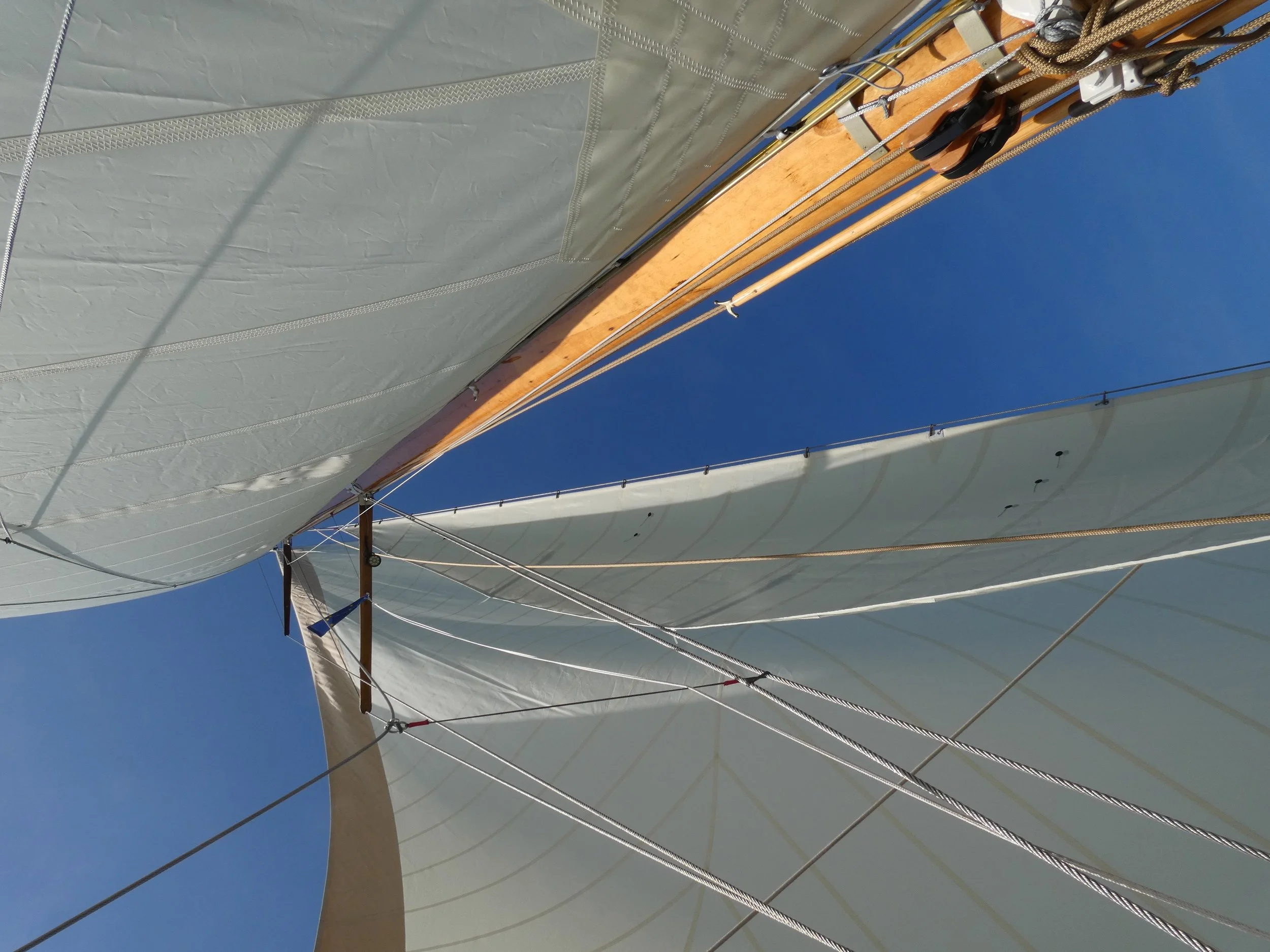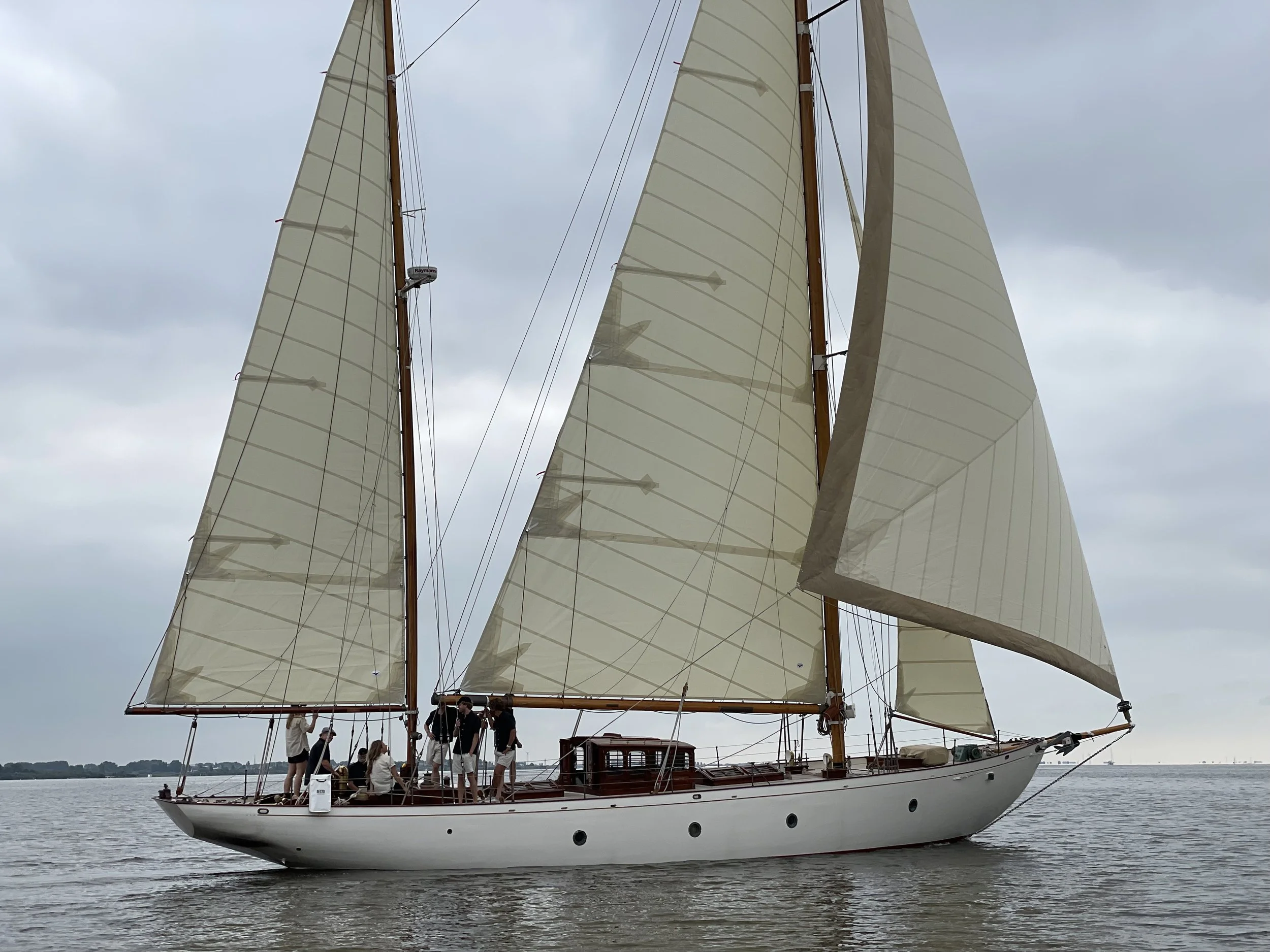 Sails: Mizzen, mainsail, and jib by Wittenvrongel, fully refitted in 2019; Original Oregon pine mast and boom retained.
